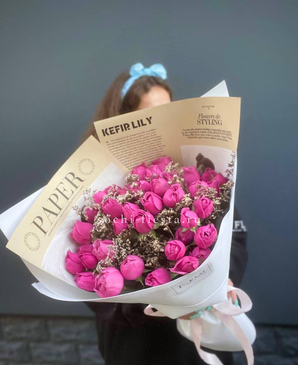 Мы работаем только со свежими цветами — букеты радуют от 7 до 14 дней и дольше при правильном уходе.