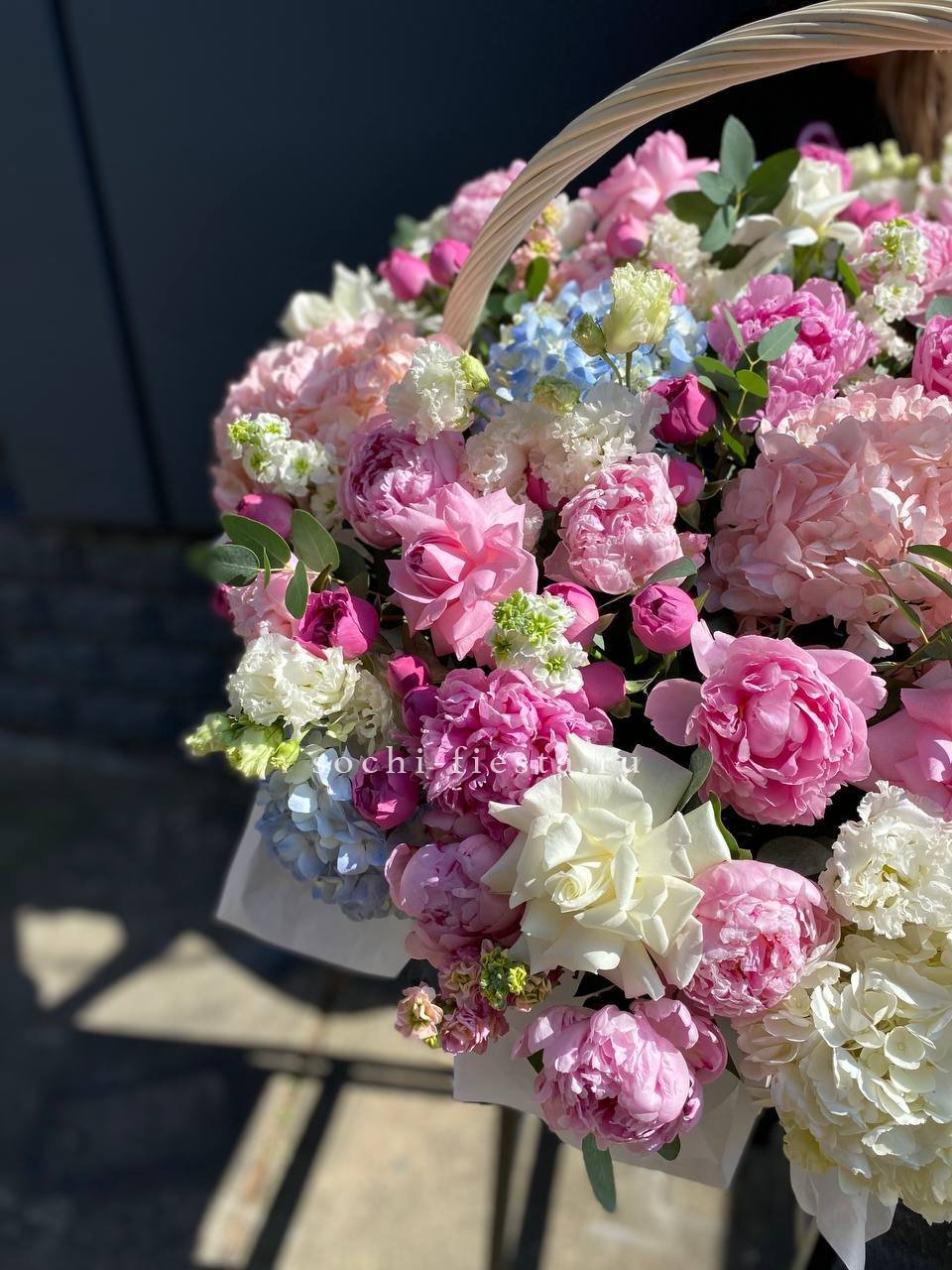 пионовидные розы Бомбастик, эустома, оформление.