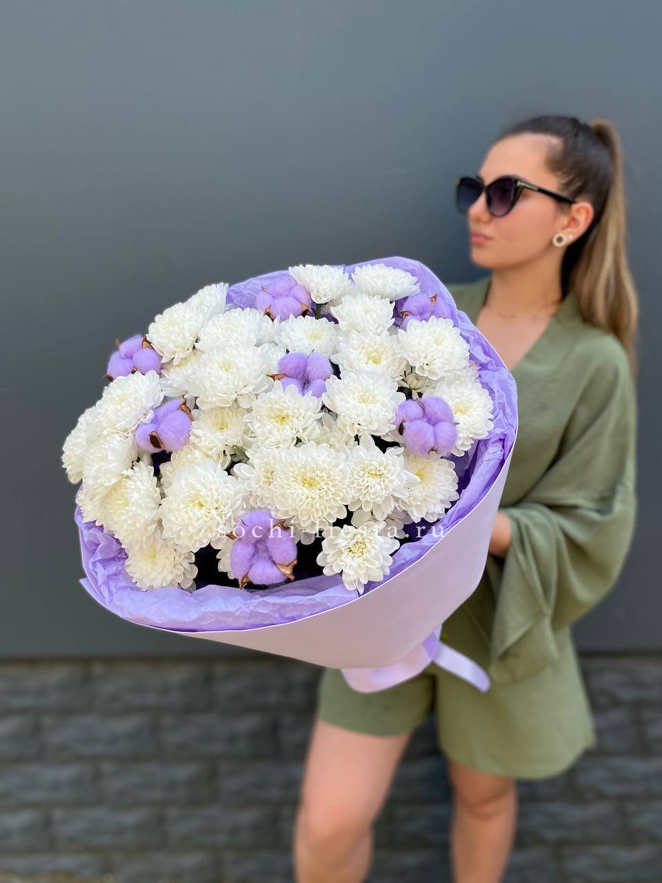 Для заказа товара " Букет хризантем и хлопка" с доставкой в Костроме нажмите в корзину