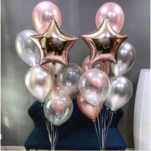облако гелиевых шаров среднего размера, выполненное из 19 шаров нежно-розовых и нейтральных оттенков, грузик.