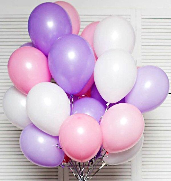 Воздушное облако из девятнадцати шаров создает мягкую цветовую волну от пудрового до молочного. Композиция легко вписывается в пространство и держит форму несколько дней подряд.
