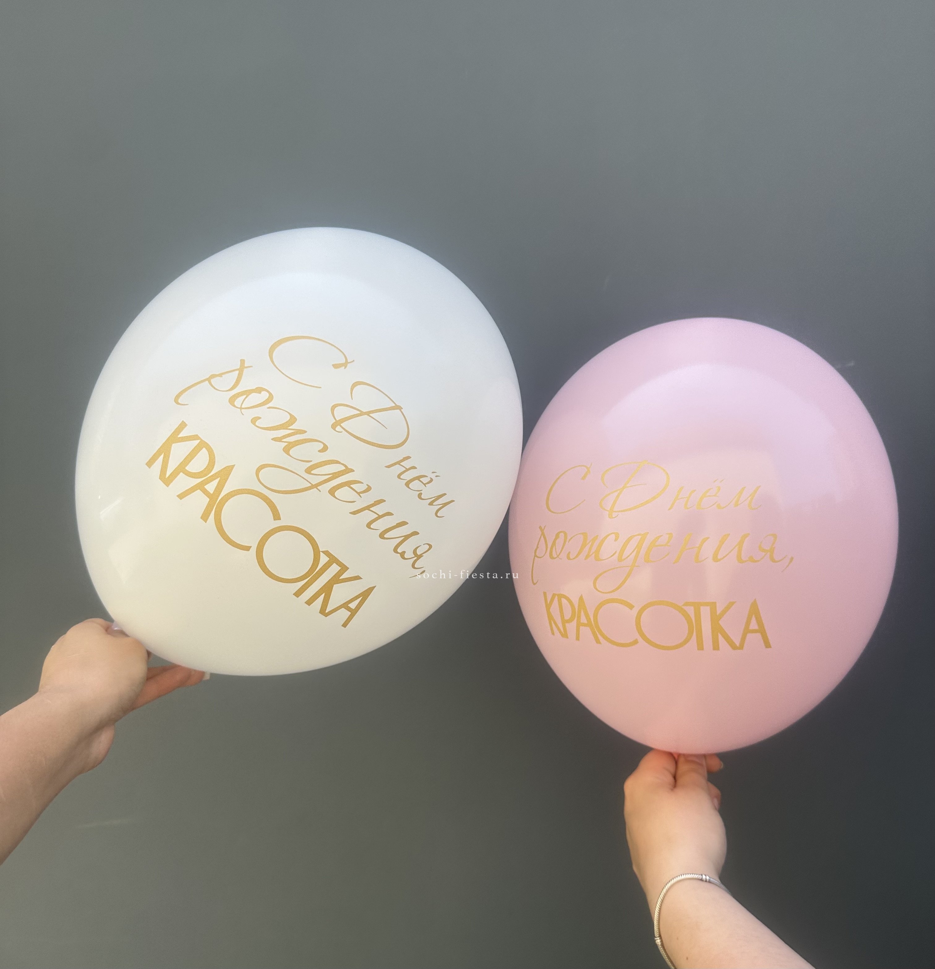 Розовые и прозрачные шары объединены в лёгкую композицию с грузиком. Обработка составом Highfloat продлевает время полёта и сохраняет форму надолго.