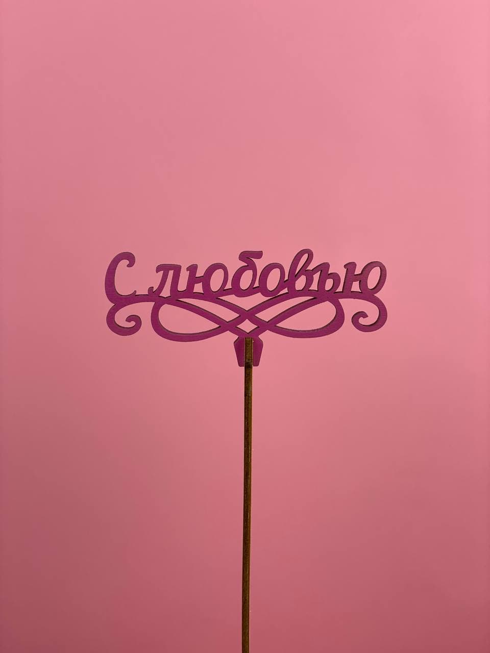 деревянный топпер. Может быть установлен в букет или композицию. Фактический внешний вид топпера может иметь незначительные отличия. Может быть заказан только совместно с букетом или цветочной композицией.