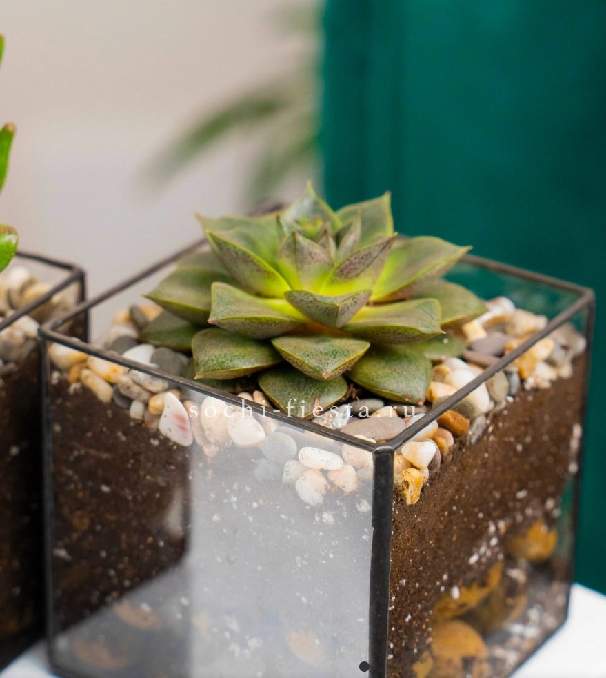 флорариум в кашпо Кубик идеален для подарка искушенным и практичным личностям. Растение неприхотливо в уходе, композиция стильно смотрится в любом пространстве:)
