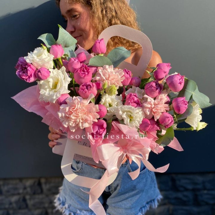 Размер выбирается по повод. Коллеге в Костроме — M или L. Юбилей родителей — XL. Выписка из роддома — L в пудровой палитре. Корпоративный юбилей — XXL. Романтический подарок — M или L в яркой палитре.