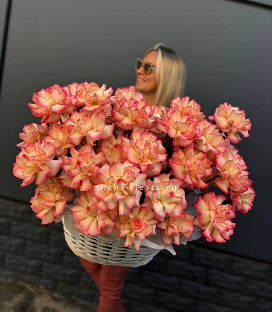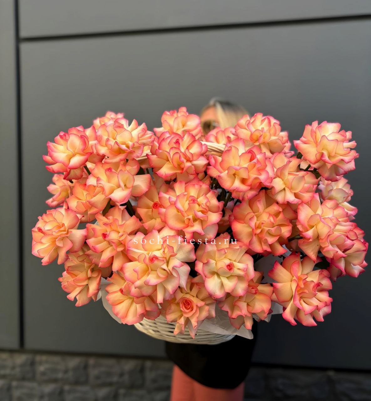 301 высокая роза в корзине