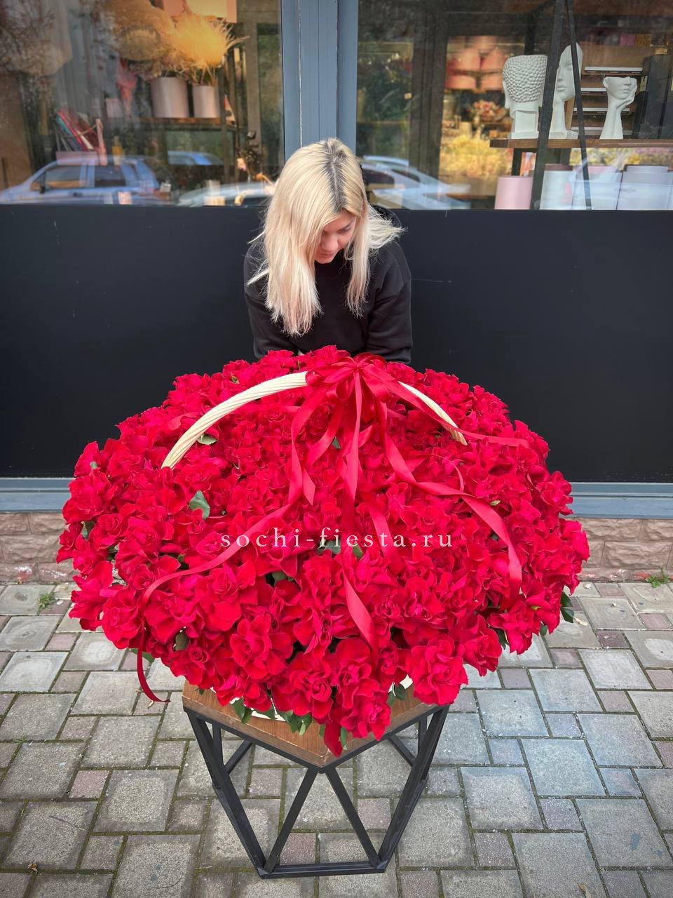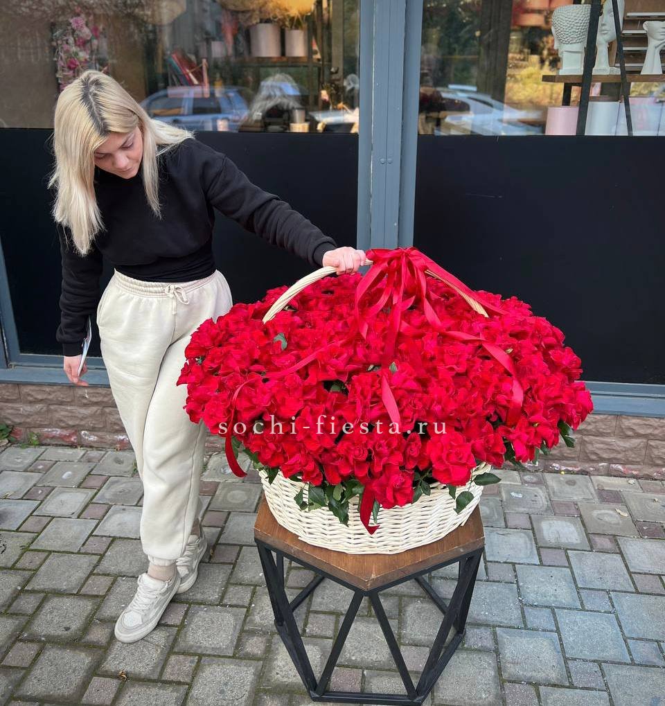 Букет сохраняет свежесть и форму благодаря устойчивой основе корзины.