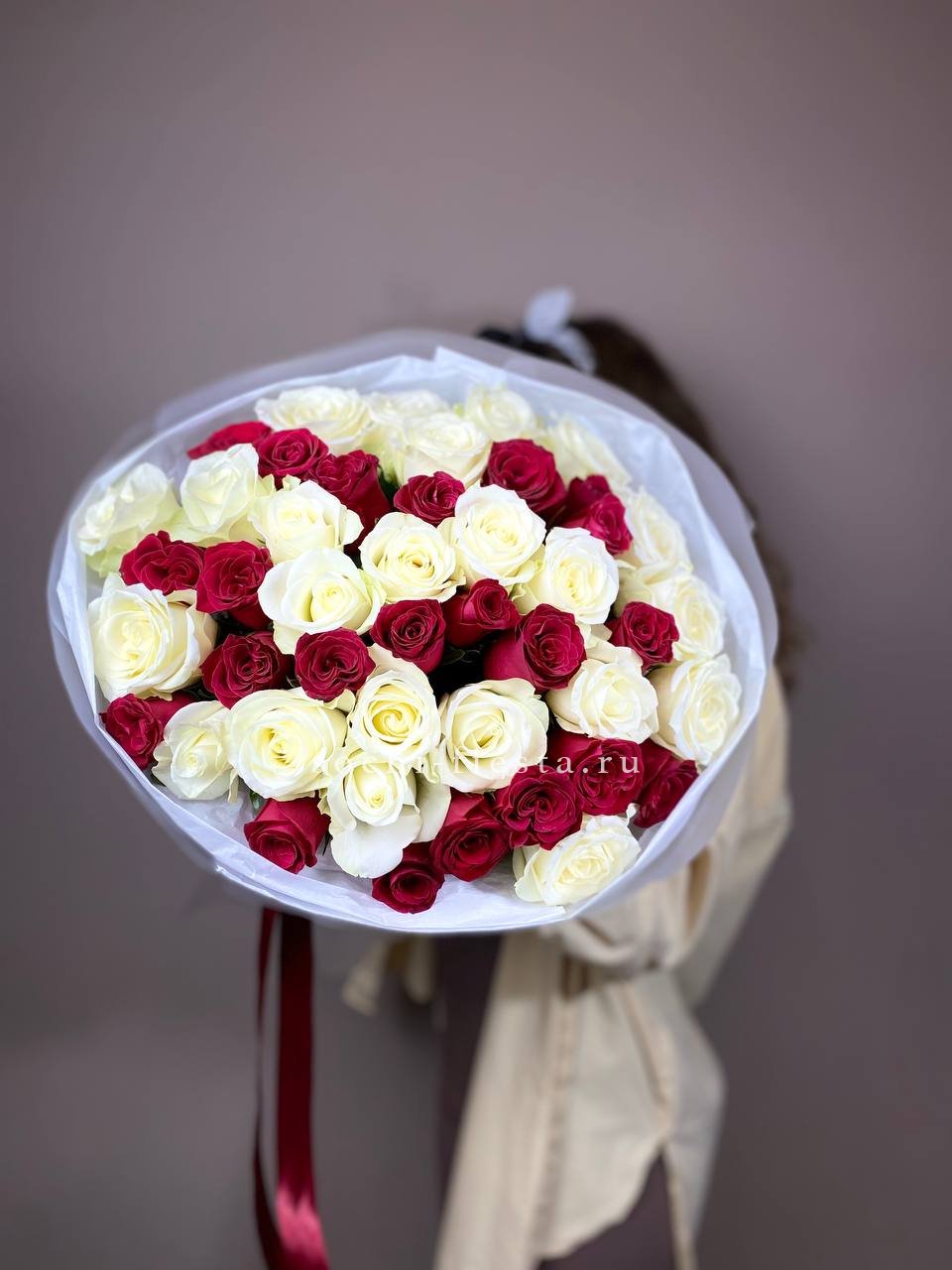 Для заказа товара "Букет из красных белых 45 роз" с доставкой в Костроме нажмите в корзину