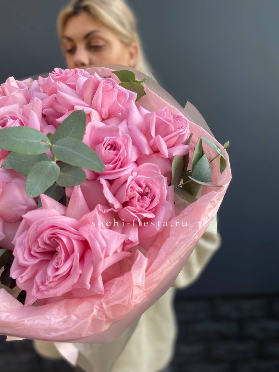 вывернутые розы - 11 шт., эвкалипт-2шт, лента, авторская упаковка.