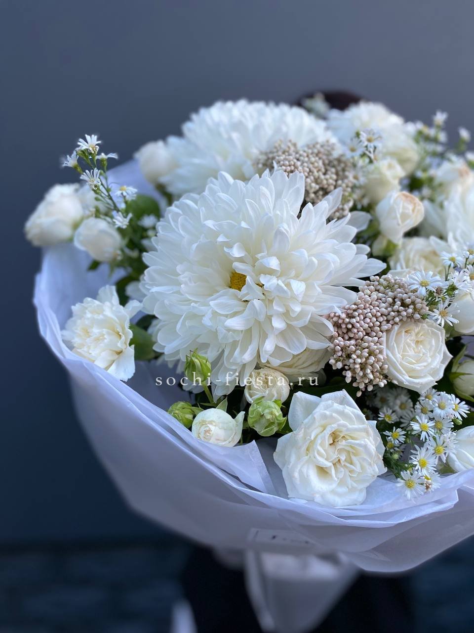 Букет хризантем и роз вайт шотс