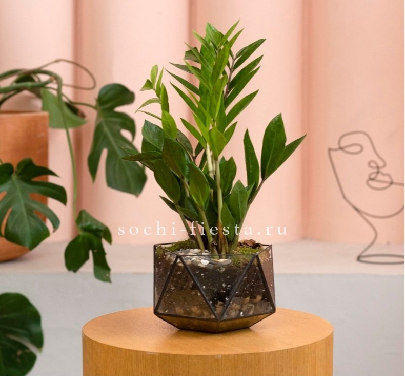 Замиокулькас в кашпо Икосаедр